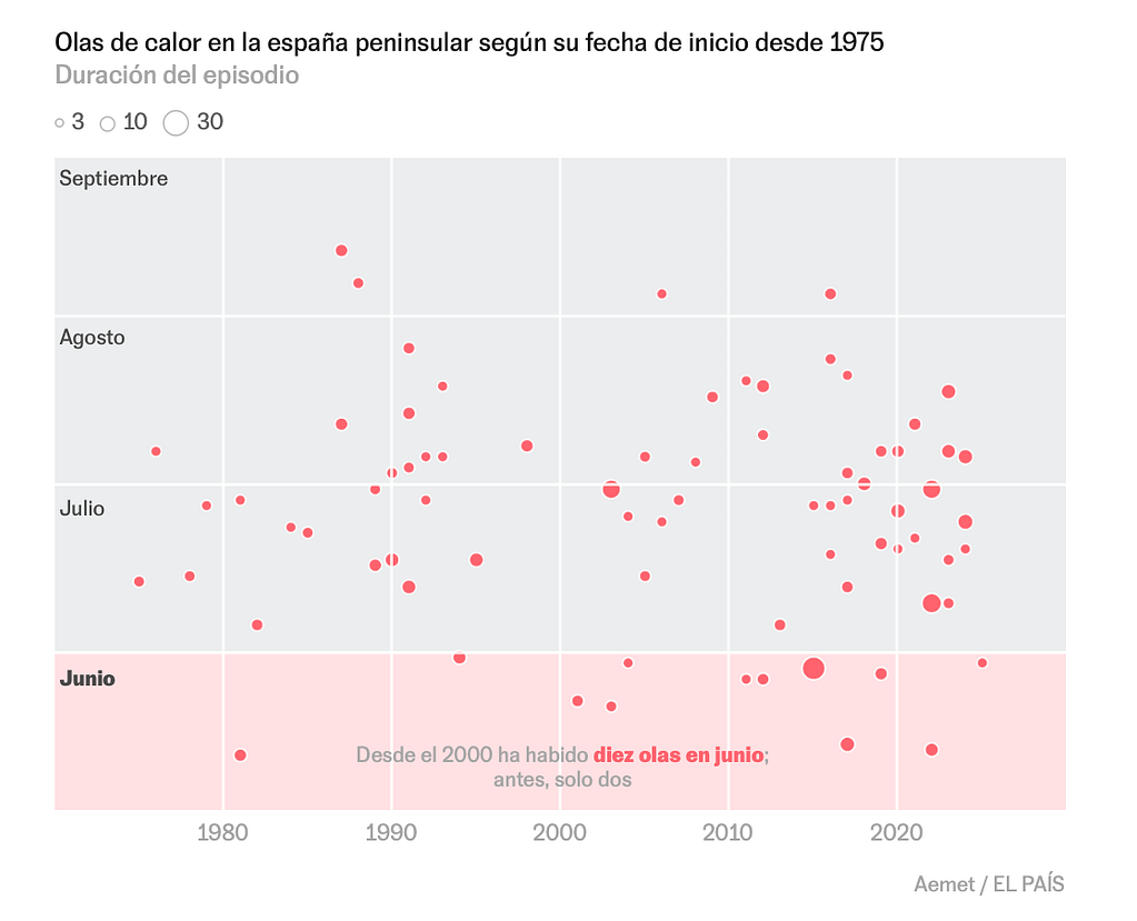 “Spain’s always hot,” some commentators have averred. Not so. This year, the end of June is experiencing prolonged temperatures, which usually do not occur until the end of July. La Agencia Estatal de Meteorología (AEMET), Spain’s weather agency, has reported an important fact. June, 2025, was the warmest month since modern records began in the Iberian peninsula. Normally as it gets warmer, the cycling group adds kilometers to the weekly rides. We also start riding earlier in the morning. But as the passing days get longer, they get hotter.